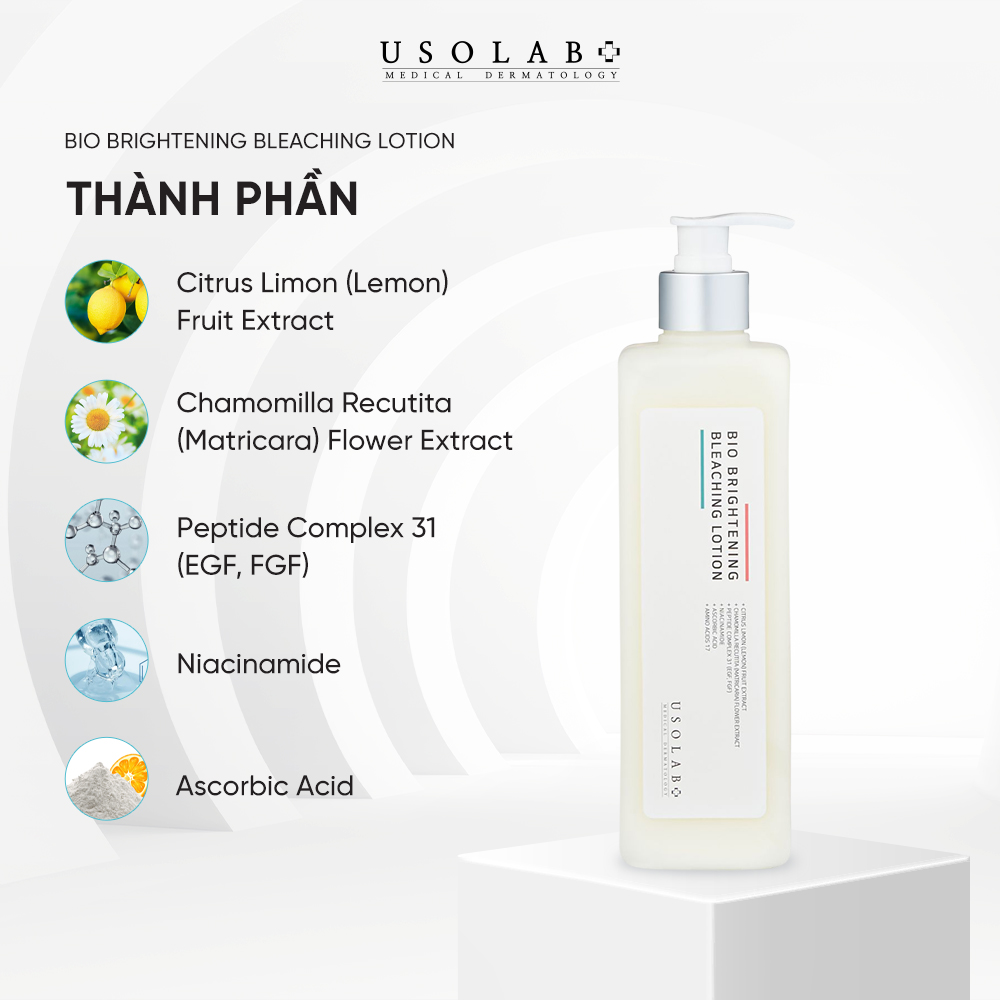 - Usolab Bio Brightening Bleaching Lotion: Lotion dưỡng sáng chuyên dùng cho body, thuộc thương hiệu USOLAB – phù hợp với nhu cầu làm đều màu da toàn thân.