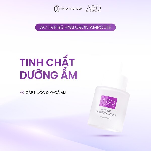 Tinh Chất Cấp Ẩm, Phục Hồi – ABO ACTIVE B5 HYALURON AMPOULE: Tinh chất dưỡng da cao cấp với sự kết hợp hoàn hảo giữa Vitamin B5 và Hyaluronic Acid (HA), mang đến khả năng cấp ẩm tức thì, phục hồi da hư tổn và tăng cường hàng rào bảo vệ tự nhiên của da. Với công nghệ tiên tiến cùng sự nghiên cứu chuyên sâu từ các chuyên gia, sản phẩm giúp làn da nhanh chóng lấy lại vẻ căng bóng, sáng mịn, mềm mượt và tràn đầy sức sống, phù hợp cho mọi loại da.